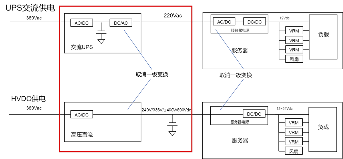 UPS与HVDC供电结构对比